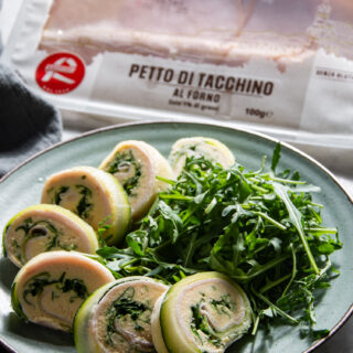 Rotolo di zucchine con hummus e Tacchino arrosto